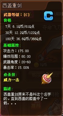 TNT弹道轨迹西盖重剑,TNT弹道轨迹西盖重剑攻击力,TNT弹道轨迹西盖重剑可控角度、爆炸范围、必杀技能、攻击力。