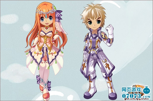 当然,如此一套精致的女款套装怎能没有一款同样出色的男装与其搭配。全身以蓝、白、金为主色调的男装颇有一股圣战士的霸气。挺括的风衣、雪白的手套、以及靓丽的长靴,怎一个“酷”字了得!帅气俊朗的外表加上炫酷时尚的套装,足以秒杀无数女性游戏玩家。