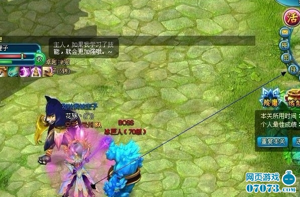 被BOSS打到残血我们立马就要停止攻击,还是要待在X轴,千万别乱走,就这样不攻击BOSS,晃着X轴跑,让宠物去拉仇恨,直至BOSS对宠物产生仇恨攻击宠物,这时候,我们立马脱离X轴走出BOSS攻击范围,收掉宝宝或宝宝战死,BOSS失去攻击目标后,会在攻击范围内寻找攻击目标,如果没有寻找到可攻击目标将回保持静止状态(怎么确定走出攻击范围?屏幕不显示BOSS血量条就等于走出,切记,是不显示!!远程攻击BOSS例外)