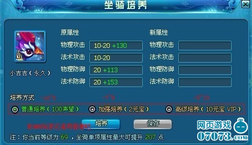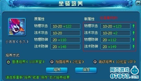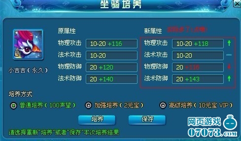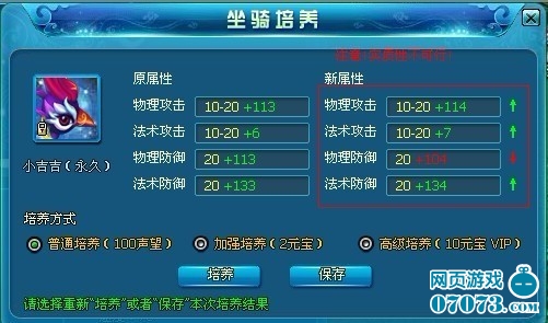 不需要花大量性质去解释如何培养坐骑,一针见血的说就是每次培养坐骑的附加值比上次附加的多就可以保存了