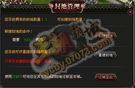 点完创建封地会出现封地管理的窗口,我们在该窗口点击迁城至此就可以了。