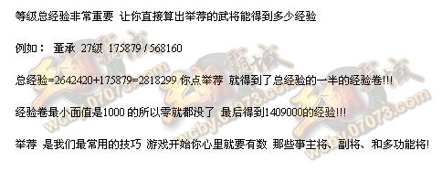 还有就是要轮回的兄弟们! 不要一开始就把武将 举荐了然后发现想要轮回的武将还有到不了40!先算一下要轮回的几个武将的经验! 然后算下举荐的武将能得到经验!够了就OK 大胆的举荐吧!!!
