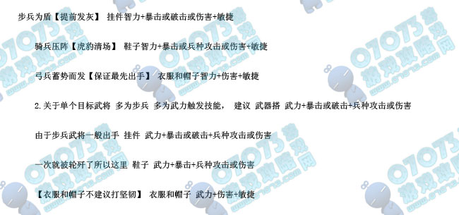 1.关于多【4个以上】目标武将 多为弓兵智力触发技能,建议武器搭配智力+暴击或破击或伤害+敏捷