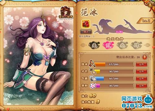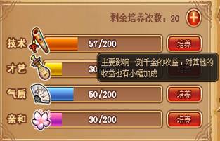 每个美女都拥有4项不同技艺,培养技艺即可为主角增加不同的状态和奖励哦!