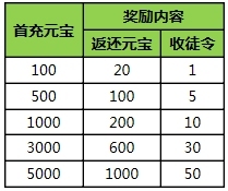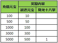 【活动内容】:活动时间内,单笔充值订单的充值元宝满足以下条件即可获得精美礼包一份。