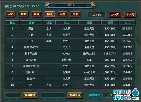 城池排名是按城池的人数来排名的,城池人口相同按城池的类型排名。