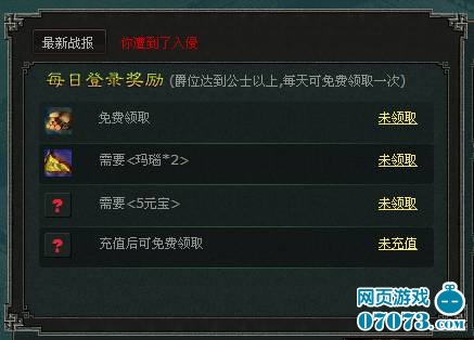 每天登陆领奖的玩家爵位至少要求达到“公士”级别。