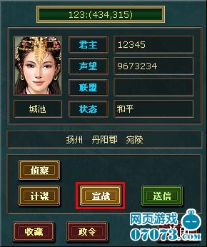 当然,您也可以使用计谋道具“不宣而战”,不需要通过宣战就能进行攻击。但有利就必定会有弊,通过使用道具“不宣而战”进行攻击的玩家,会降低其声望值。需注意的是,道具“不宣而战”的使用冷却时间是6小时。