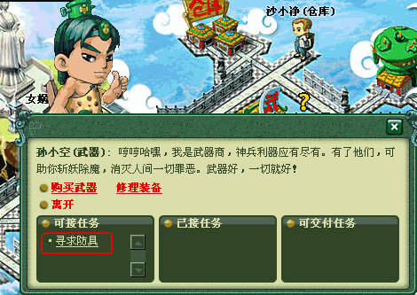 点击NPC后,打开NPC对话页面,页面中显示可接任务名称: