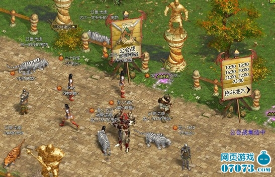 其次,我们必须清楚知道“公会战开始阶段”的每个步骤,这样才能知己知彼,百战百胜!在公会战即将开始的前5分钟,系统会提示当前在线玩家。公会战的入口位于活动通道的右侧,玩家可根据大地图上的“活动通道”指示标志,轻松找到公会战的入口。