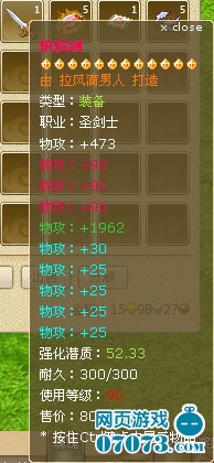 我,可以用来强化装备,也就是提升装备星级,每强化成功一次,武器装备星级就会从1星增加到2星、3星、4星……也就是武器装备附加的属性点都会提升一个等级。当然精炼也非常危险,如果精炼失败的话,则装备和我都会一起消失。不过,谁不想有超高的防御和攻击,不用害怕各种怪物,也不怕和别人PK呢!