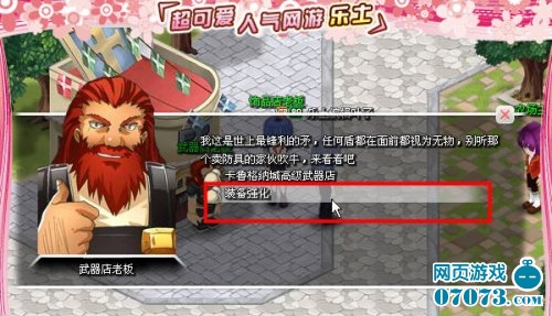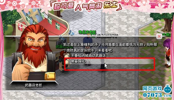 第一步,找到强化装备的NPC。你可以找到任意一个武器店老板,也可以像小编一样,找到卡鲁格纳城的武器店老板,点击对话,打开装备强化界面。
