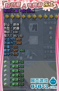 从七星以上开始,每次强化成功提升的属性都是以前的数倍。当你强化到十星时更能得到巨量的属性提升,这时,再为你的神器打孔镶嵌上对应的宝石,那么一件完美的装备就诞生了: