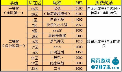 各位亲爱的玩家: 想要拿到以上这些羡煞旁人的极品大奖,只需在活动期间为《乐土》充值即可,这样好的机会可不多了!所以抓紧时间,行动起来!最后究竟谁主天下,让我们拭目以待吧! 为了庆祝《乐土》客户端在全区上线、也为了回馈广大玩家对我们游戏的支持,我们特地在上周开启了百乐会充值榜第三期活动,并采用了全新的评奖模式。今日,在大家的热情支持与殷切期盼中,百乐会充值排行榜第三期第一周活动即将揭晓大奖得主,限量版神兽、时装、顶级职业神器马上送出! 看着别人手握神器,身着华服,身伴神兽的驰骋乐土,你的心里是否会憧憬着也有那么一天呢?现在只剩下最后的机会!在活动结束之前为《乐土》充值,就有希望获得顶级的神兽、神器、时装大奖,你还在犹豫什么?能否一跃成为《乐土》中的明星角色,就在你的一念之间! 查看百乐会充值榜活动详情:http://www.letu365.com/zt/blhrank3/ 此外,所有新区玩家为《乐土》充值都能自动参与新区充值排行榜的活动,活动奖励各职业顶级神器。 新区充值榜活动详情:http://www.letu365.com/zt/newarea25 百乐会充值榜第三期第一周大奖马上揭晓 根据这一周激烈的角逐,最后的神兽、神器及时装将找到自己新的主人,下面我们就来看看这一期的充值活动中又有谁能荣登榜首,得到这些羡煞旁人的极品大奖呢? 百乐会充值榜第三期第一周活动截止时间至8月28日0:00 本期活动会采用全新的评奖模式,未获奖的充值玩家,充值金额将会保存、累计到下一周活动中,直到获奖为止!所有充值玩家的获奖几率都会大大增加! 目前,24区玩家“七夜”、20区一位匿名玩家以6100元的充值金额并列位于充值榜第一位,如果不出意外的话,他们二人都将获得我们的头等大奖!不过,紧随其后的玩家与他们的充值金额相差也不是很大,例如:23区玩家“二月”充值5000元、7区玩家“快乐的小小强”充值金额4950元,这些玩家只需要加一把劲就能超过前面的玩家名列第一喔!要知道,第一名可是拥有完美的神兽水龙王以及其他名次没有的职业神器作为奖励呢! 下面我们放出全服充值暂时领先的前十位的玩家,若不出意外的话,他们都将获得这一期的限量版超级神兽、时装、顶级神器大奖,(统计数据截止8月27日10:00): ![]() 充值快报 超级大奖送不停 是什么奖品能让《乐土》的活动进行的如日中天,让玩家们竞相追捧?它们究竟有什么魅力?下面就让我们一探究竟。 奖品一:限量版超级神兽 白金版超神兽天生就具有完美的天赋评分,珍藏版超神兽则具有极品二星以上的天赋评分。白金水龙王三项天赋评分达到500以上,而力量评分更是达到654,是目前为止《乐土》中最为强大的神兽。 超级神兽水龙王具体属性如下: ![]() 超级神兽水龙王属性图 除了超强的成长天赋之外,超级神兽水龙王独特的技能才是它如此强悍的原因:可以连续攻击目标三次的“三连击”,能够吸取生命的“爪击”这样的技能搭配让它能攻、能守,让它成为当之无愧的《乐土》第一宠! ![]() 水龙王的强力技能 奖品二:职业神器 百乐会充值榜活动的第三重奖励职业神器更是目前《乐土》中最为顶级的物品,是各职业都梦寐以求的梦幻装备! ![]() 游侠职业神器部件 点击查看职业神器详情:http://www.letu365.com/data/2009-04-02/1433.html 奖品三:限量版时装 参加百乐会充值榜活动还能免费获得限量时装奖励,本次活动所赠送的限量版白金时装包内含有钢铁女郎·疾、钢铁女郎·灵、堕落·疾、堕落·灵四种,打开白金时装包将随机抽取其中一种。
