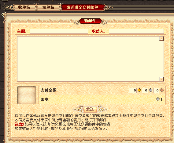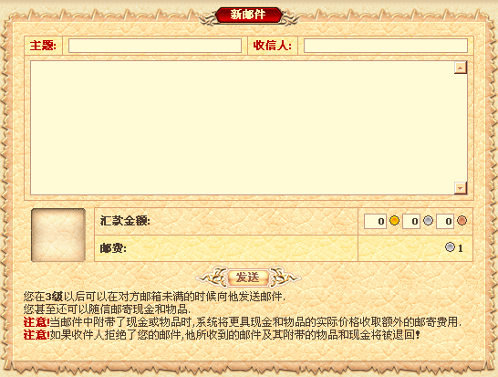 对了,最后一下提醒各位:在费欧大陆寄送任何邮件都将被扣除一定费用。
