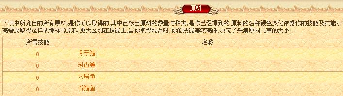 16.同时,在右面的“原料”栏里我们可以查看自己目前可以钓哪种鱼
