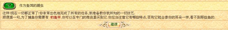 点击绿圈内有问号“作为鱼饵的潮虫”后面的“继续”按钮