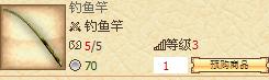 ,点击钓鱼竿上的蓝色按钮,将钓鱼竿装备在身上