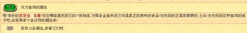 8.这时弹出对话,我们点击“我有10条潮虫,拿着它们吧!”