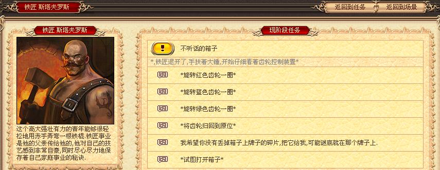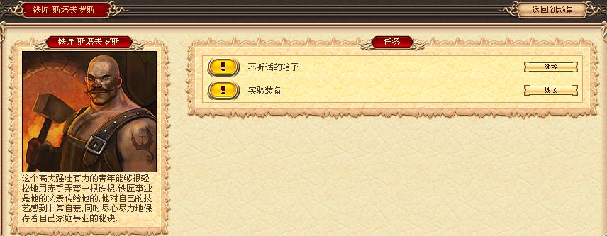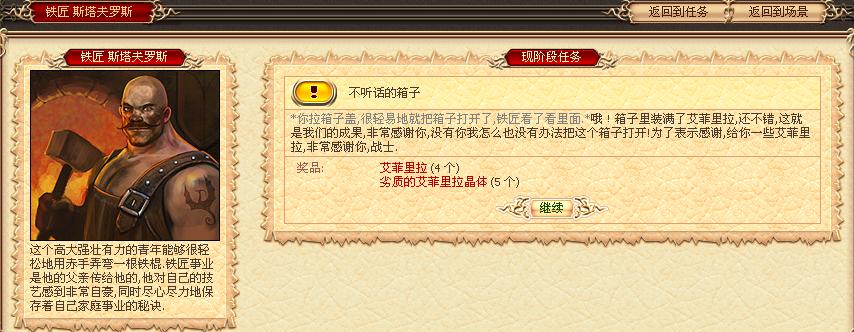 (铁匠处可以领取2个任务,3级的测试职业套装任务和4级的箱子任务)