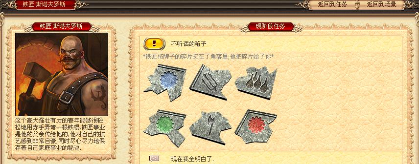 (选择“我希望没有丢掉箱子上牌子的碎片,把它给我,可能谜底就在那个牌子上)
