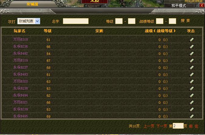 2、你可以看到本等级层的玩家,只要点击名字后面的那把“剑”图标,就可以攻打其他国家的玩家。