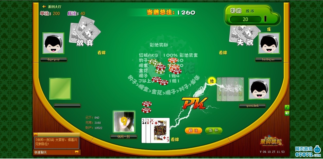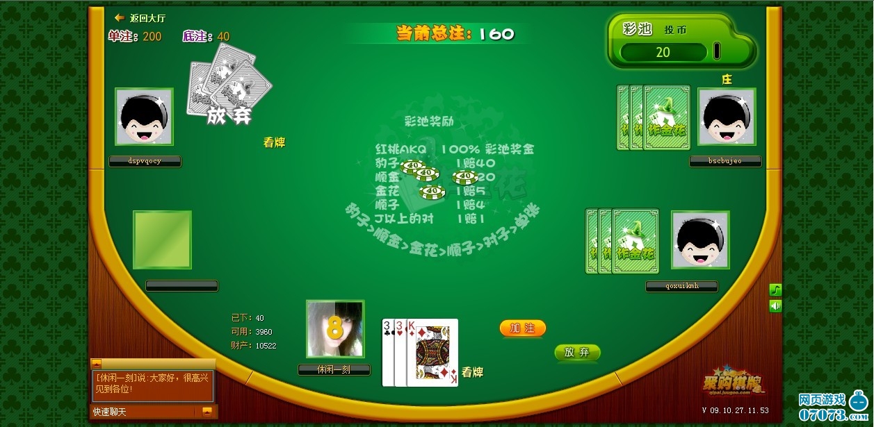 游戏界面由经验丰富的美术人员精心设计完成,加上绚丽的动画特效,聚购棋牌能给你带去全新的游戏体验。