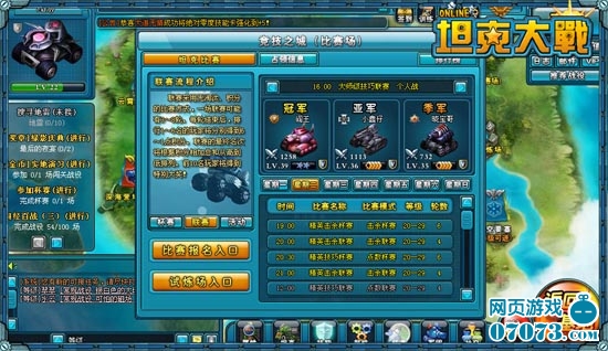 ¡¡¡¡ÔÚÕ½¶·½çÃæÖУ¬µã»÷ÓÒÉϽǵġ¾¾º¼¼Ö®³Ç¡¿£¬¾Í½øÈëÁ˱ÈÈü³¡£¬ÕâÀï»áչʾһÖÜÄÚËùÓеıÈÈüÈճ̡£È»ºóµã»÷¡¾±ÈÈü±¨ÃûÈë¿Ú¡¿°´Å¥£¬½øÈë´óÌü¾ÍÄÜ¿´µ½¼´½«¿ªÊ¼µÄ±ÈÈü£¬µã»÷×ó²àµÄ¡¾Èü³Ì±í¡¿¾ÍÄÜ¿´µ½²»Í¬±ÈÈüµÄģʽ¡¢±¨Ãû·ÑºÍ±¨Ãû¹æÔòÀ²¡£ÁíÍ⻹ÓÐÒ»¸öÁÁµã——¾Ñé±¶Êý£¡¾ÍÊÇ˵£¬±ÈÈüÖеÄÕ½¶·¿ÉÒÔ»ñµÃ·Ç³£¶àµÄ¾Ñ飡±¨Ãû¿ªÊ¼ºó£¬µã»÷±¨Ãû²ÎÈü£¬¾ÍÄܽøÈë±ÈÈü·¿¼ä×¼±¸¿ªÊ¼±ÈÈüÁË¡£