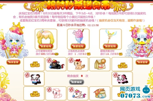 秒杀还没到时间么,不要紧!成套购买红宝石三周年庆套装,即可获得3次额外的抽奖机会哦!(当天有效,逾期作废。)