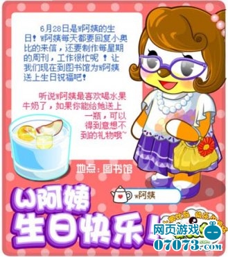 6月28日,奥比岛上周刊主编W阿姨的生日到啦!小奥比有没有写信和准备礼物祝福W阿姨呢?没关系,听说W阿姨最喜欢水果牛奶了,如果你能给她最喜欢的水果牛奶,绝对是送给她最好的礼物哦!~
