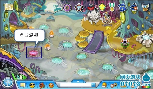 然后来到双子阿尔法星,点击图中圈出的红色温泉。