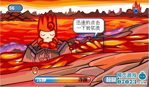 当流下来的岩浆里有石块或者是岩浆浪,要用鼠标快速点击一下,石块和岩浆会碎裂。之后再继续点击鼓励。
