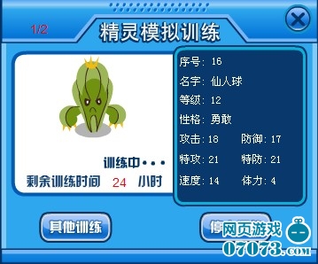 精灵模拟训练同时可以训练两只精灵,训练成功后,会显示训练界面,如果只训练了一只精灵,可以点击其他训练,训练下一只精灵哦。