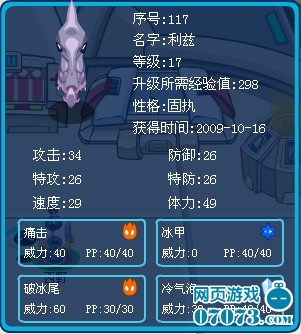 特殊攻击,威力30,命中后10%令对方冻伤,PP :40 |