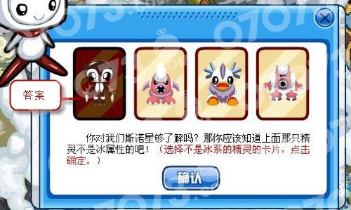 一段对话之后,再次点击小不点妹妹,就是头上又蝴蝶结的小不点,进入妹妹的考验。妹妹的问题很简单,第一个精灵就是答案~ 点击确定吧。