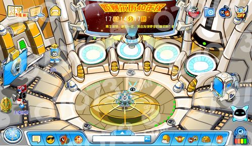 眼前一亮的传送室。看到左下角的金蛋没有?晚上八点以后可以进行砸蛋活动哦,奖励似乎是稀有精灵。嘿嘿,传送室的其他物品都是观赏性的,西野哥哥就不解释啦。不但是传送室有哦,赛尔号的所有NPC身边都有。