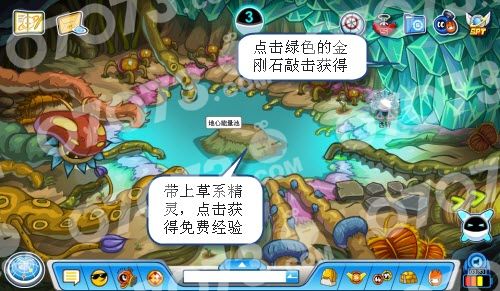 其实地心里也没啥好东东。点击克洛斯金刚石,然后在NONO变成小锤子之后敲击金刚石,就会的到金刚石。西野哥哥总结的是没敲击十次得到1块金刚石。具体作用西野哥哥会在以后研究,请继续关注西野哥哥的攻略哦。带上草系精灵,点击地心能源池,就可以获得经验了。每次三百多,能得多少次不清楚,反正就是哥免费得经验的地方= =