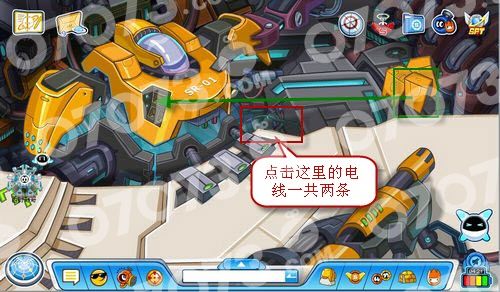 来到地下室,首先点击如图位置的电缆,一共有两根哦。然后挪动右方的零件安装到SR-01那块缺少零件的地方。