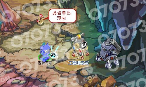 西野哥哥刚开始的四次点击气泡,什么都没有,不过西野哥哥点击第五次之后,就出现了这次的主角晶岩兽哦。点击进入战斗。西野哥哥这里要说明的是,西野哥哥不确定每个小赛尔点击气泡的次数是否相同,但是一定能后出现晶岩兽。