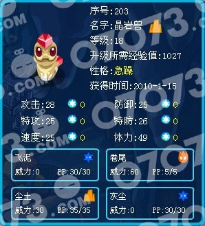 这次西野哥哥是直接用的超级胶囊收的。后来发现可以无限抓晶岩兽=。= 早知道就用普通胶囊收了。下面是晶岩兽以及进化版资料。