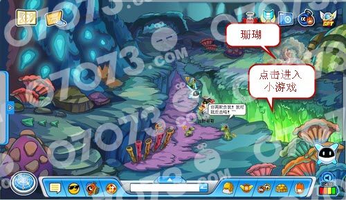 如图位置,是露西欧珊瑚,点击之后,超能NONO会直接采集。珊瑚下面的神秘地带,是一个小游戏。完成小游戏有机会获得露西之核。