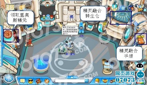 来到实验室,会发现实验室大变样。在左侧能够直接领取里奥斯精元。而右上角就是精灵融合转生仓。右侧最新的手册就是精灵融合手册。里面会向小赛尔们讲解精灵融合的各种要求。由于时间关系,西野哥哥还没有试验。不过之后,西野哥哥会对融合进行试验,和大家分享经验。