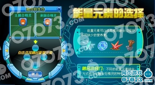 西野哥哥这里要提示,精灵融合除了主副两只精灵外,还需要纯净能量(云霄星高空层战胜幽浮获得)、海洋能量(海洋星深水区战胜厉牙鱼获得)、熔岩晶体(火山星洞穴战胜吉尔获得)和大地之核(双子贝塔星荒原战胜丁格获得)。