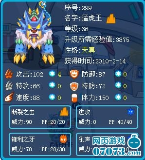 赛尔号猛虎王技能表是赛尔号年兽迅牙虎的进化体猛虎王的技能汇总。作为非常昂贵的年兽,赛尔号猛虎王技能表是很多还没有获得这次珍贵年兽的小赛尔们最关系的问题。下面西野哥哥就放出猛虎王的技能表,希望在虎年对各位小赛尔又所帮助吧。