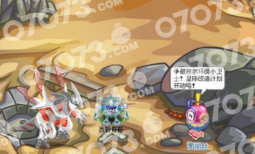 赛尔号星球改造计划是本周赛尔的主线任务哦。面对着荒漠,小赛尔们都希望能把它变成美丽的森林,这需要赛尔们付出很多努力哦。下面西野哥哥就和小赛尔们一起完成赛尔号星球改造计划吧。