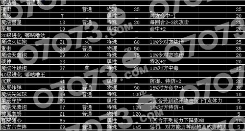 嘟咕噜的技能表。