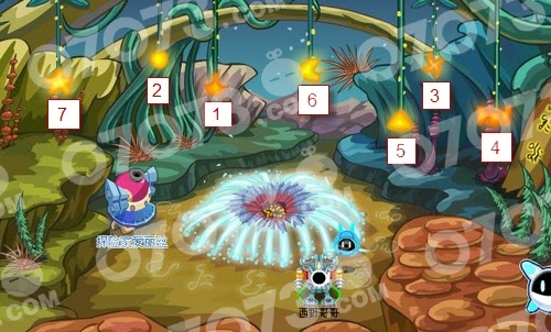 来到艾迪星,按照顺序点击图中各种图案的音乐小风铃。