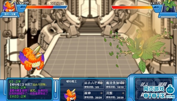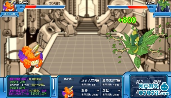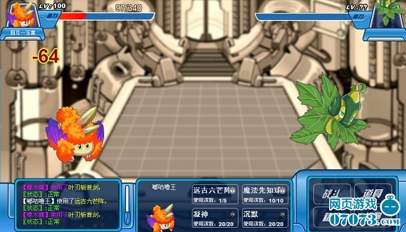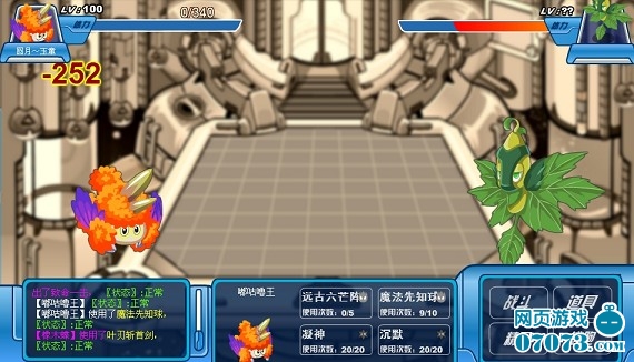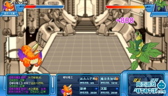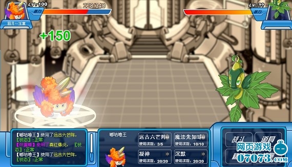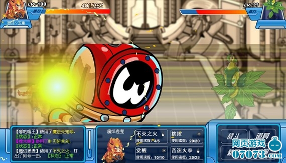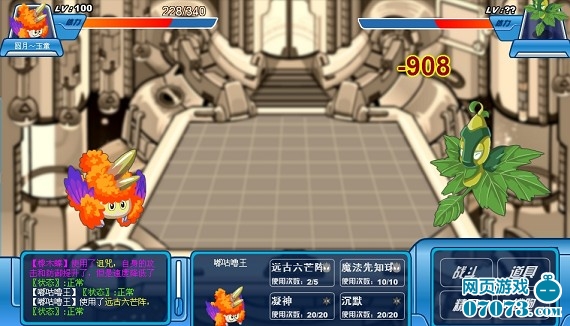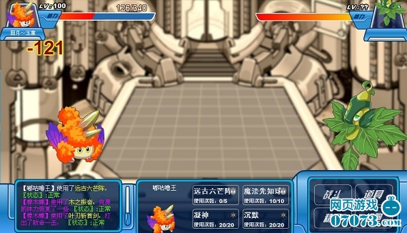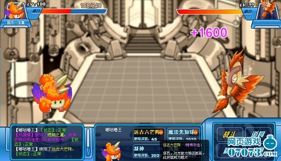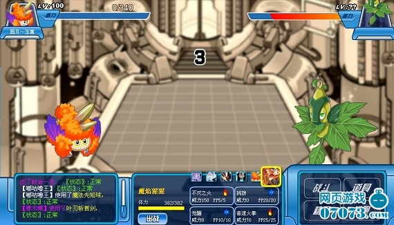 我方还有4名队员,成竹在胸,虽然水、地面无用,但是还有火、机械,应该没问题。 “魔焰”闪亮登场,直接来个“致命一击”!