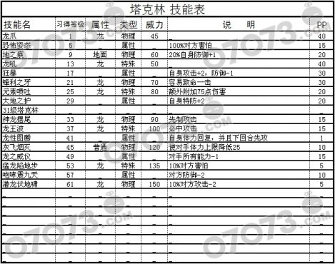 赛尔号塔克林技能表,完全版。破解所获数据,真实性还是比较强的。这周五就要更新了,估计塔克林是其中之一,看看技能表研究下如何对付这只大龙吧。(点击图片查看高清大图)