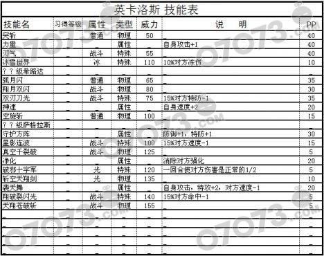 赛尔号英卡洛斯技能表(由星·小羯整理提供):